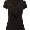 Styling: V-Neck with ruffles, gathered shoulder top, cap sleeve